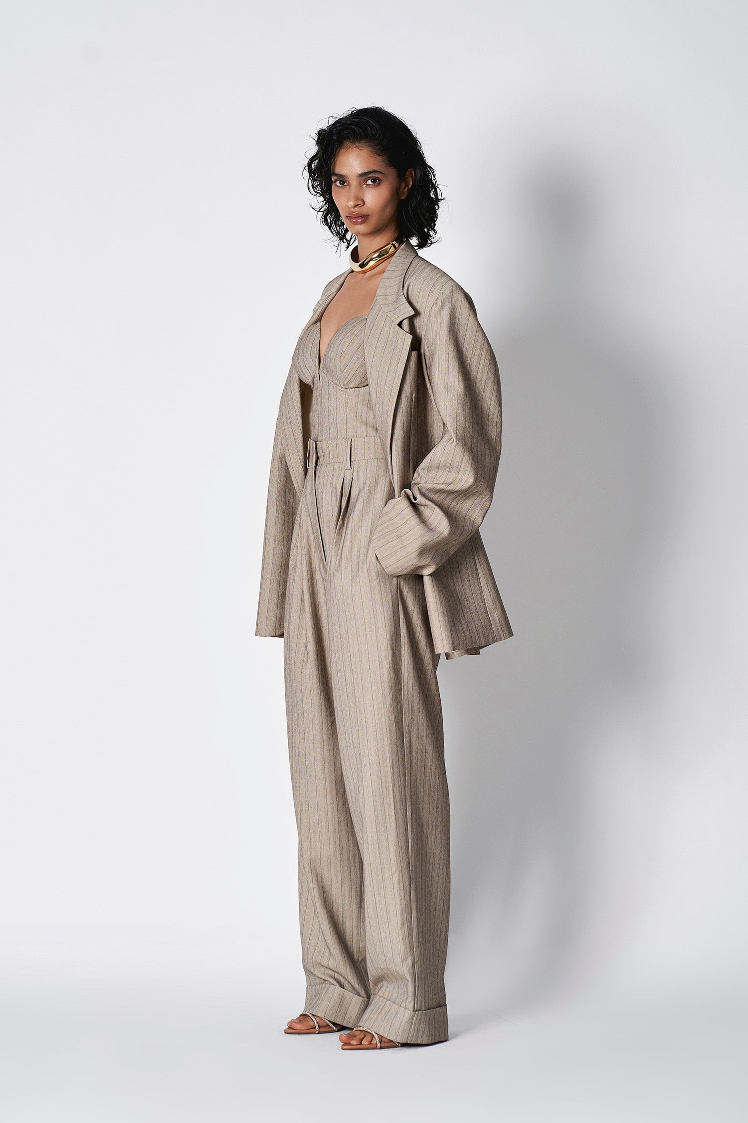 The Alex Blazer 2.0 is an ode to classic tailoring. Cut from a luxe suiting fabric it has an oversized fit. It is designed with notched lapels, shoulder pads for adding structure, and a single-breasted button fastening. Complete your set with our matching trousers and corset or style it as a separate over your dresses or jeans.