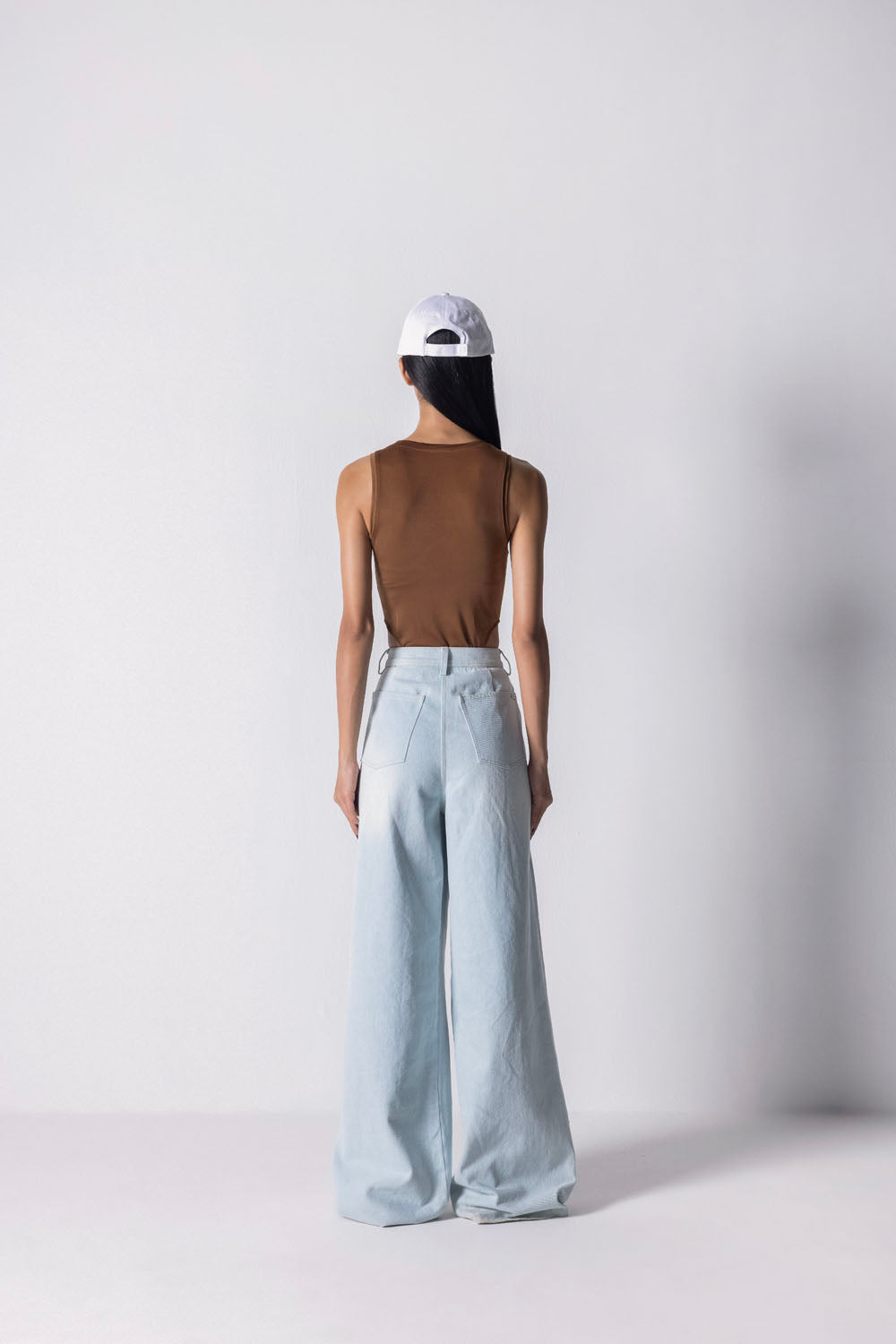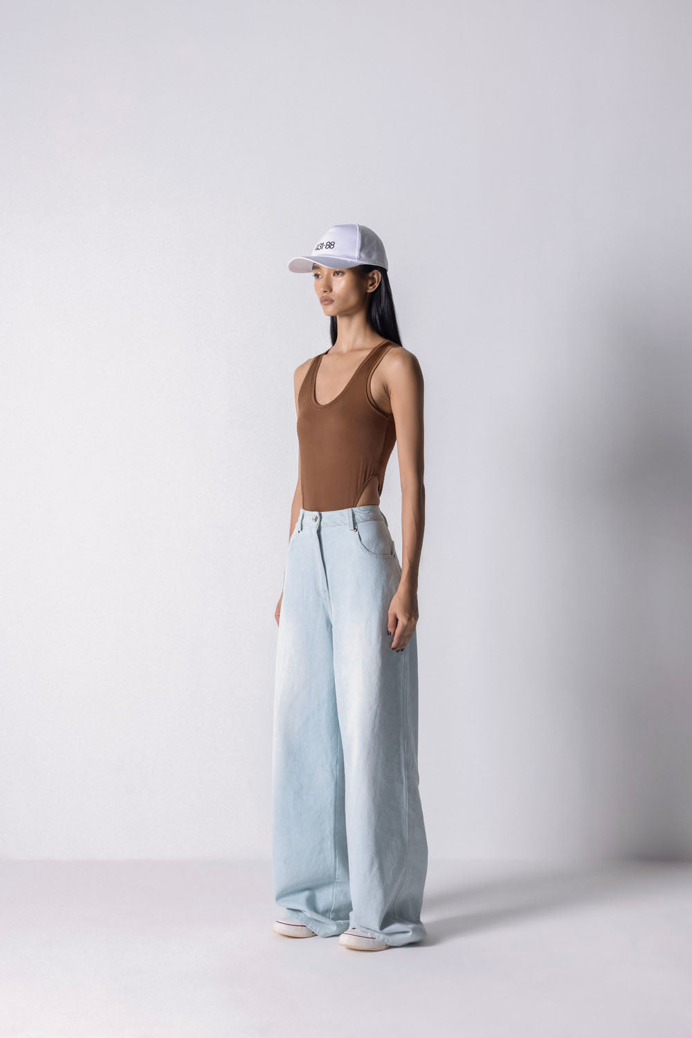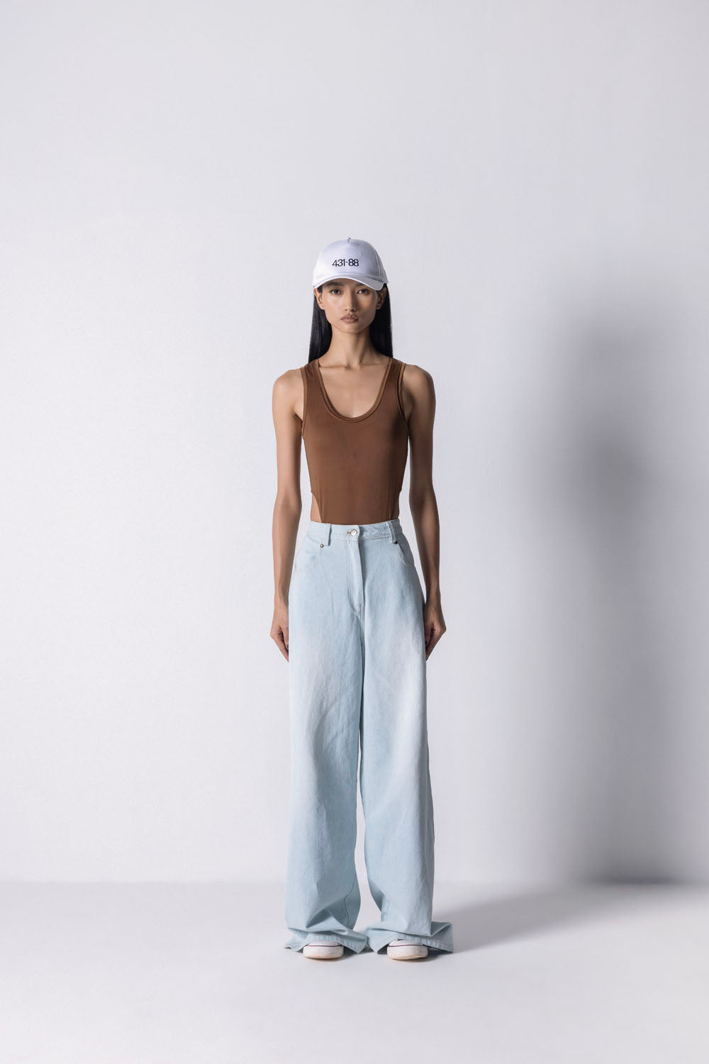Bay Pants, 4-pocket jeans in rigid cotton denim that feel firm at first but then soften and loosen with wear. Straight leg with a loose fit from the waist to the hip and a baggy fit from the thigh to the hem. Regular waist with a zip fly and button. Longer length, designed to fall over the foot with a stacking effect. A relaxed and cool denim statement.