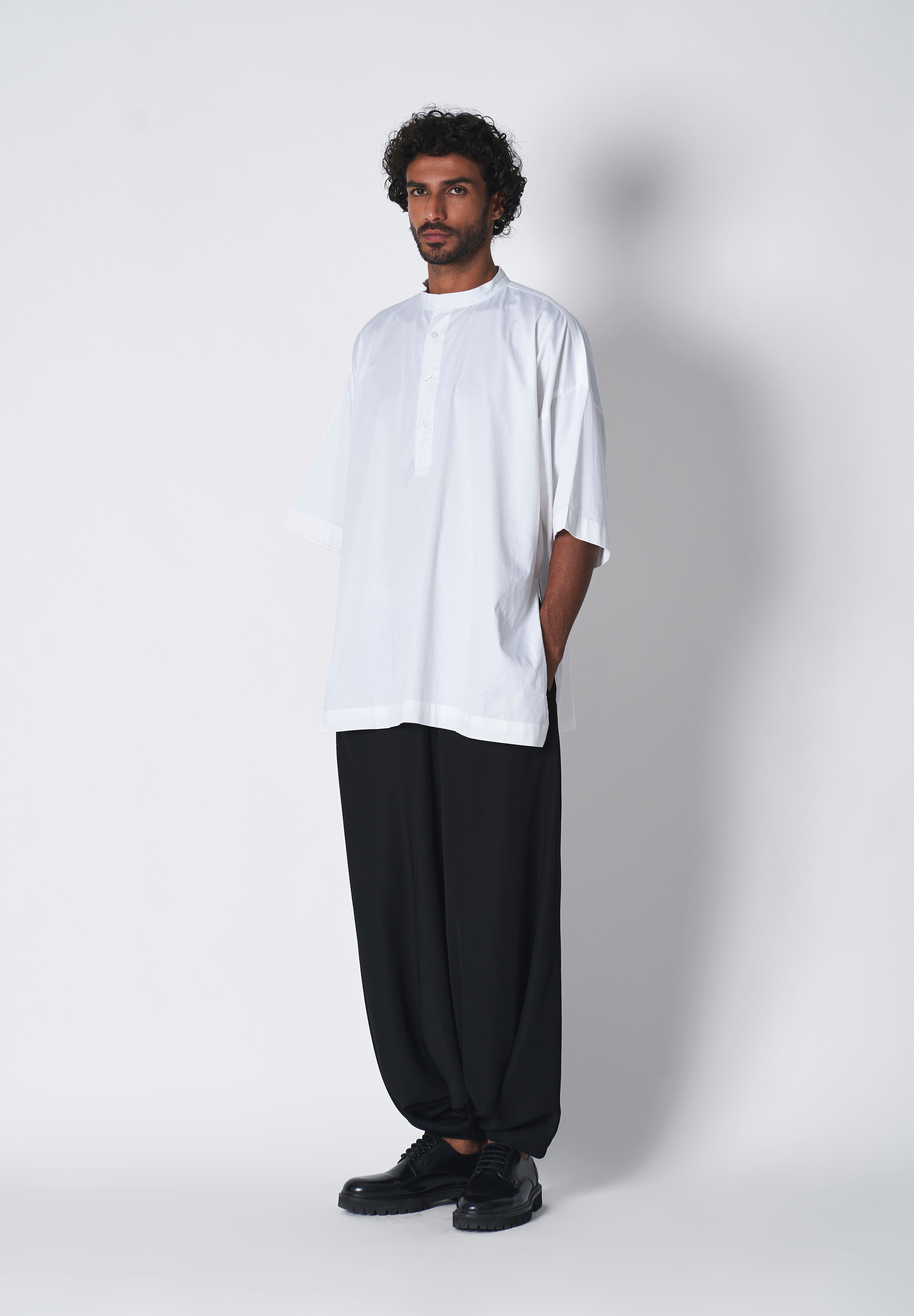 Our Block shirt is a perfect combination of causal and formal with comfort. This Shirt have a mandarian collar and kimono sleeves which allows easy movement to a person. You can pair it with our harem pants and finn blazer to complete the look.