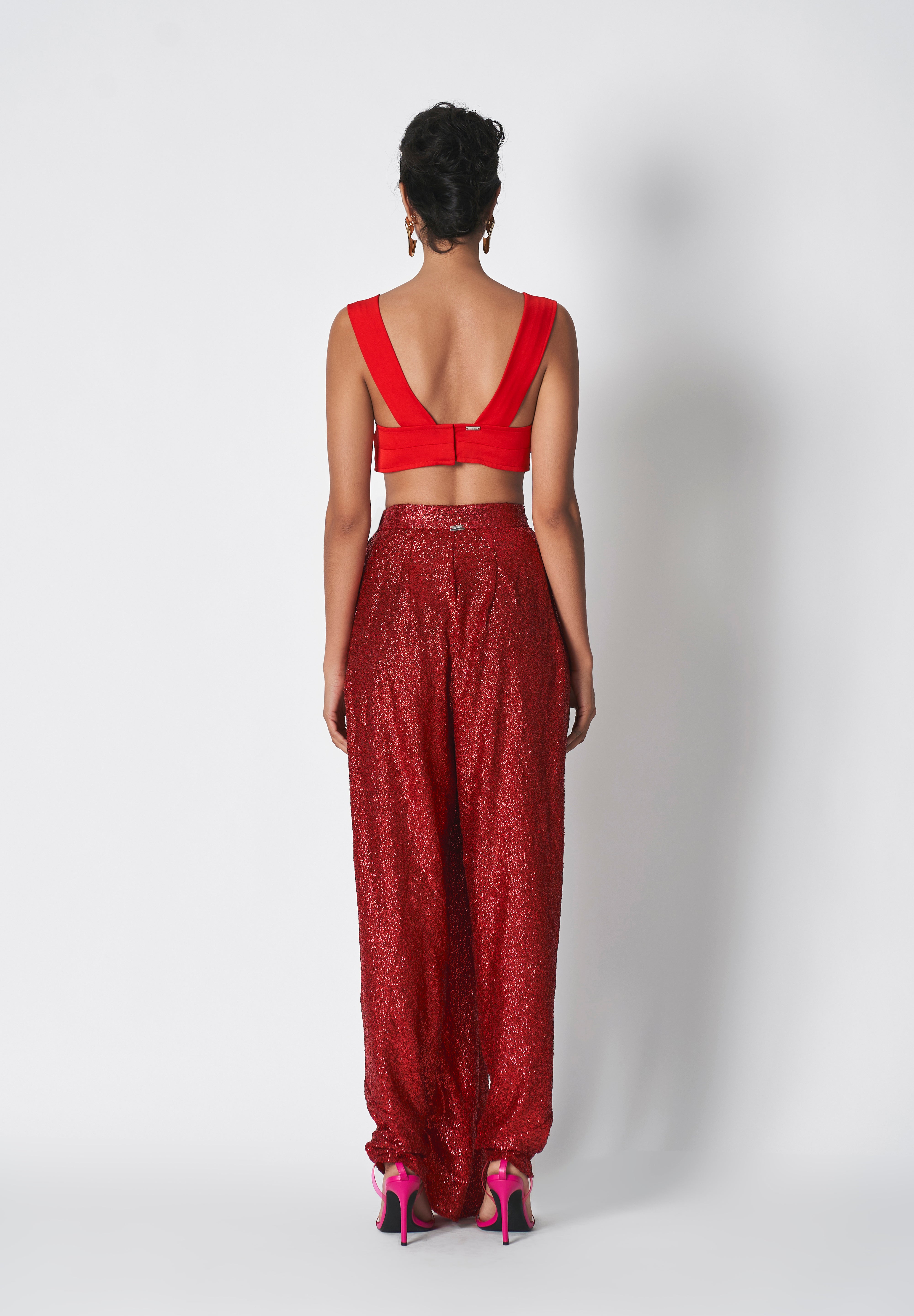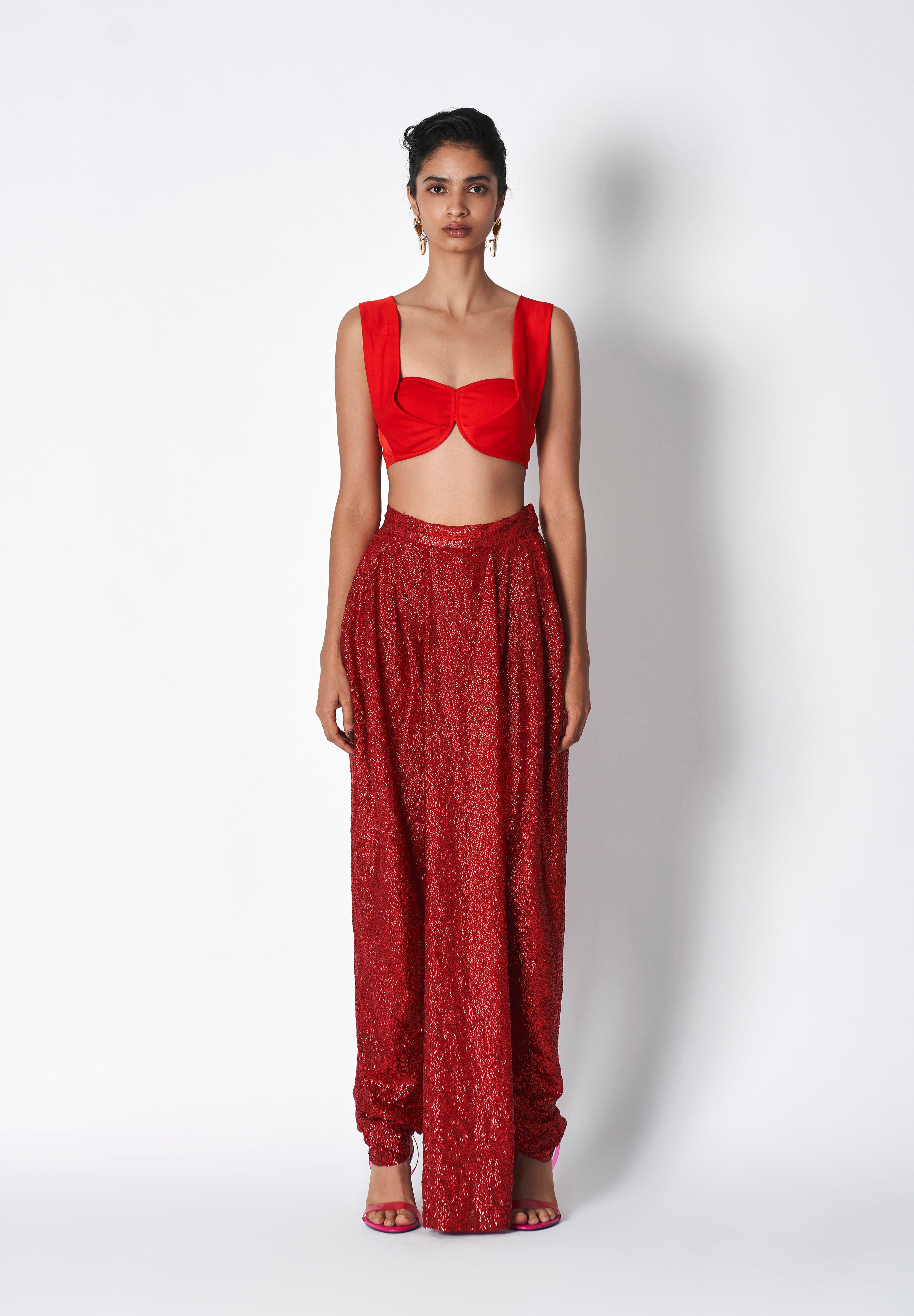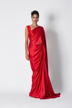 Fiotop  is a sculpted top commanding attention. The symmetrical curving of the  micropoly exudes both structure and softness. Offering a unique combination of coverage and openness. The blouse has a back closure with hooks . Perfect for pairing it up with pant suits , skirts or a sari also.