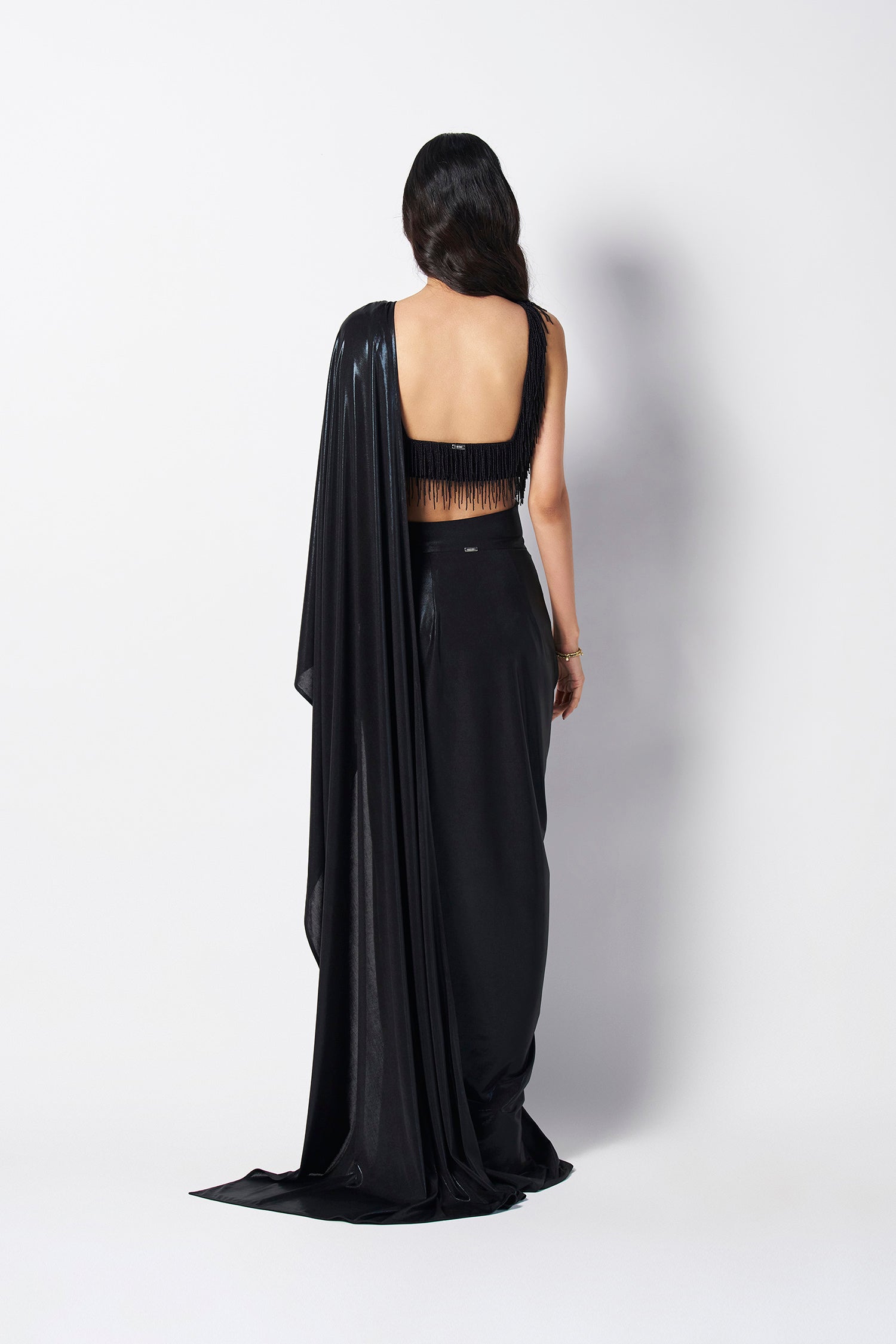 The Inch Blouse is a fun and sexy addition to your wardrobe. It’s carefully hand-embroidered with delicate beads that create a fringe effect. The blouse features a round neck and a curved hem for a soft, flattering look. It fastens at the side with a concealed zip and pairs perfectly with a sari or skirt.