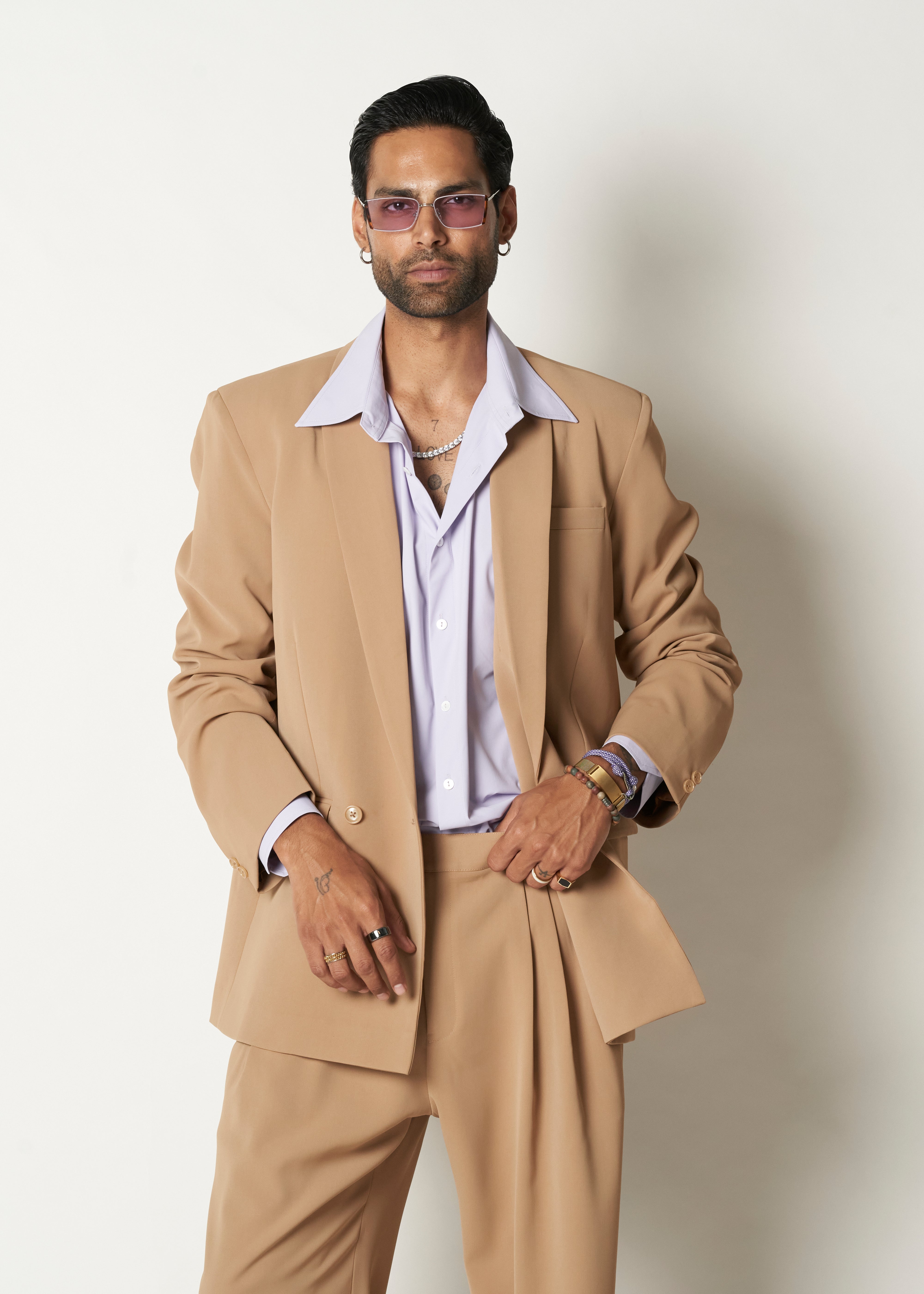 Maxim Blazer is a straight-fit blazer with a notched lapel collar and long sleeves with buttoned cuffs. It has patch pockets at the hip and an inside pocket detail. Essentially a double-breasted cut in a regular fit.