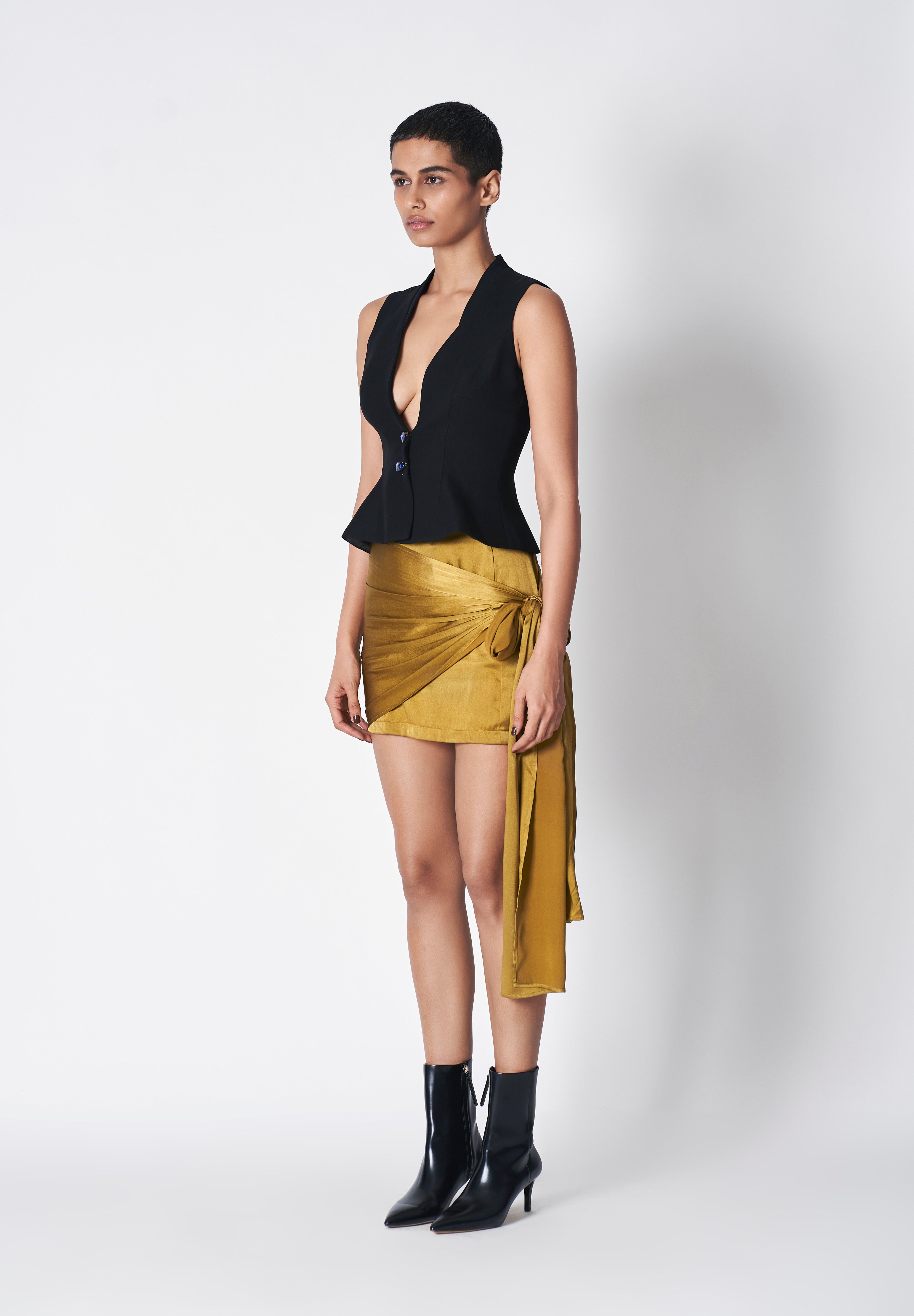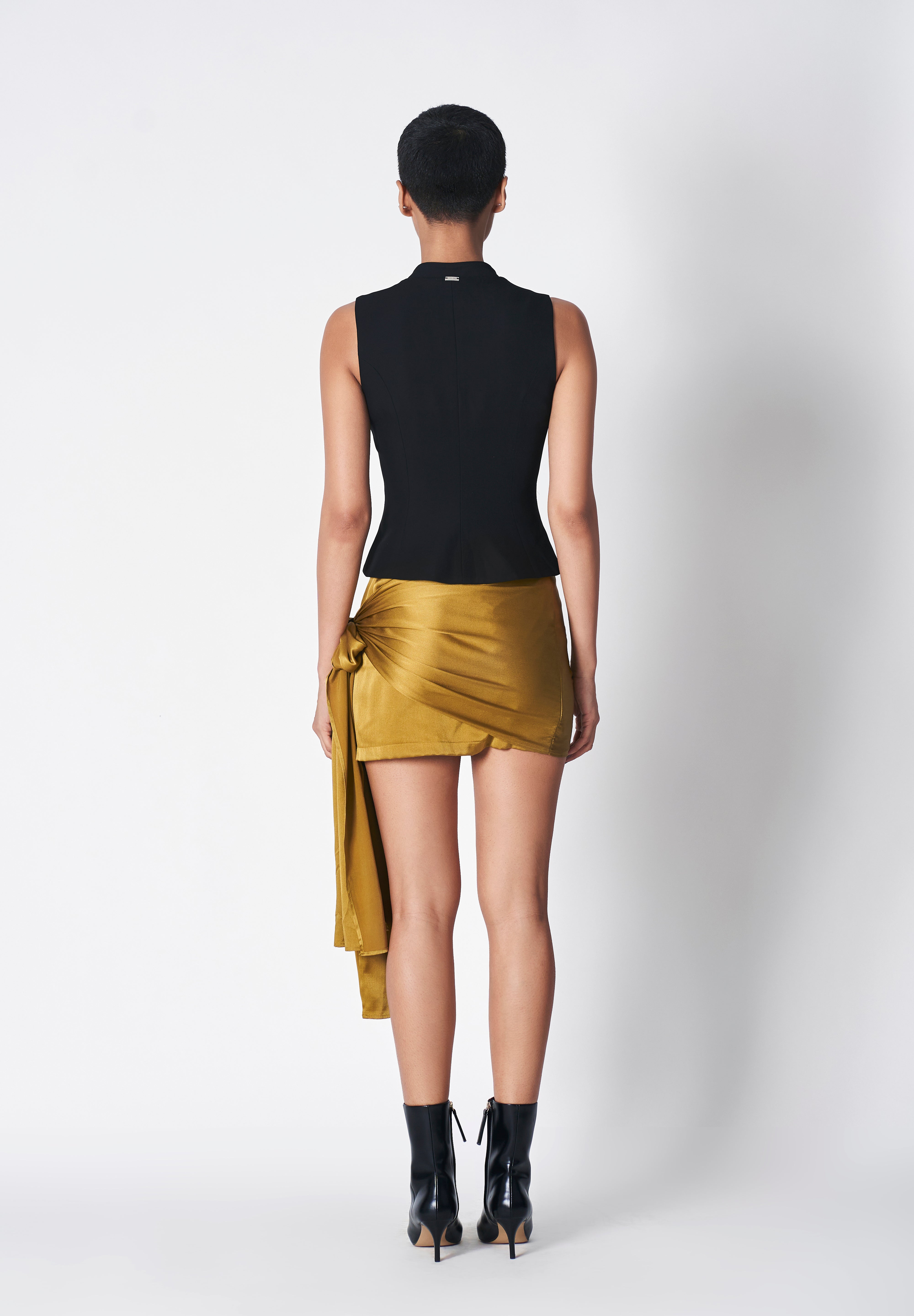 The Minny Skirt is sure to become a timeless staple in your wardrobe. This mini skirt is complemented by a wrap-around panel and a knotted detail on the side, all crafted from luxurious Satin fabric, ensuring a blend of comfort and sophistication. Perfect for work or date night, its classic design and elevated details will make you stand out from the crowd.