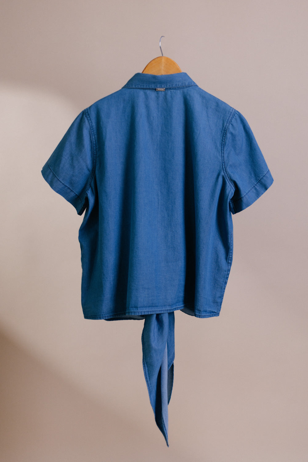 The Raindrop Denim Shirt has a boxy fit with a tie front detail that accentuates your waist. The collar has been enhanced with a delicate crystal embroidery to give it that subtle glam.