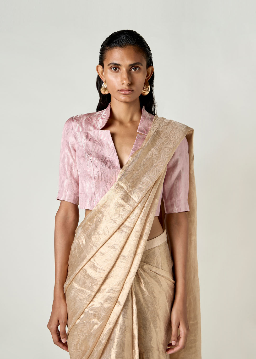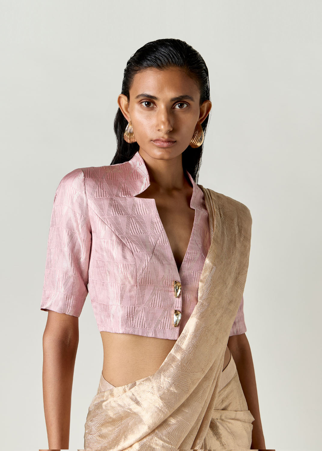 The Shris Jacket is a backless cropped jacket cut in a hand-woven brocade fabric, embellished with our signature maxi crystal.